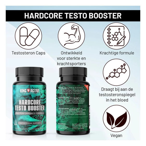 Als man ben je hopelijk niet de hele dag met je lichaam bezig. Maar als je vindt dat je te weinig spiermassa hebt, óf als je kampt met erectieproblemen dan is dat natuurlijk wel vervelend. Het kan leiden tot een verlaagd zelfbeeld en onzekerheid. Je kunt King Active Hardcore Testo Booster gebruiken ter ondersteuning. Dit voedingssupplement stimuleert de aanmaak van testosteron, het mannelijk geslachtshormoon. Dit hormoon helpt je bij de aanmaak van spiermassa. Daarnaast is testosteron hét hormoon dat zorgt voor een goed en gezond libido.