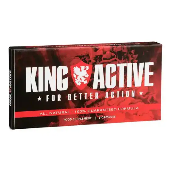 King Active stimuleert de vitaliteit en zal daardoor de lustgevoelens bevorderen en je seksleven spannender maken. Door een verbeterde doorstroming zal het je erectie ondersteunen en eenvoudiger worden meerdere malen achtereen een orgasme te behalen. De ingrediënten dragen bij voor meer controle over je erectie en stimuleren het uithoudingsvermogen, ook kent dit product geen nare bijwerkingen. De samenstelling van bestaat uit krachtige en natuurlijke ingrediënten in een capsule van gelatine en wordt strikt gecontroleerd voor de beste kwaliteit van een hoogwaardig voedingssupplement, waaronder;