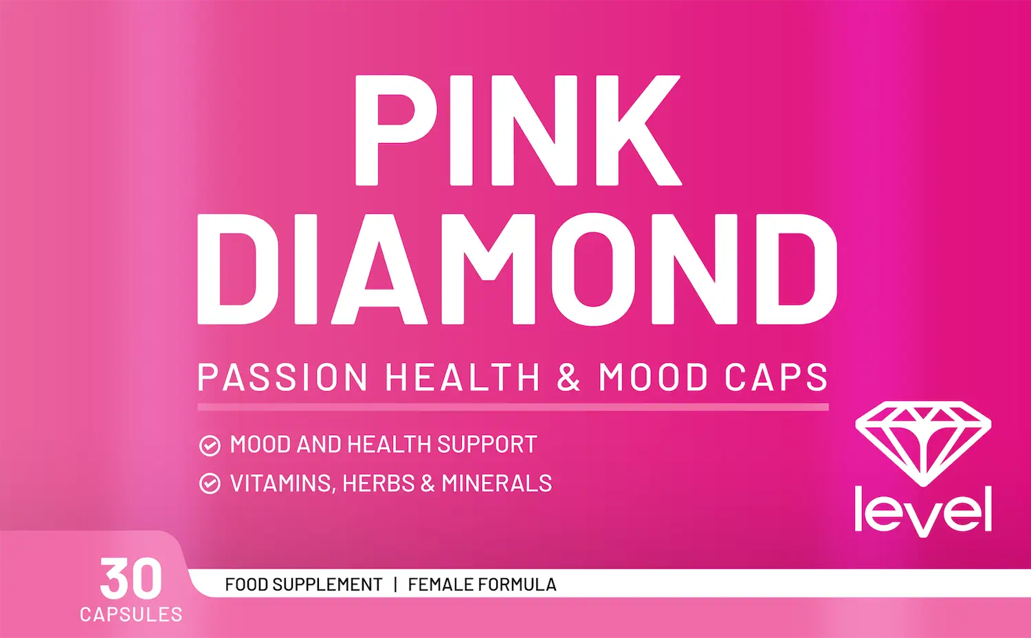 Bij Level weten we hoe belangrijk het is om je fysiek en mentaal in balans te voelen. Daarom hebben we met toewijding Pink Diamond ontwikkeld: een geavanceerd supplement dat jouw welzijn op meerdere fronten ondersteunt. Speciaal samengesteld voor vrouwen die op een natuurlijke manier hun libido, hormonale balans, energie en gemoedstoestand willen optimaliseren.