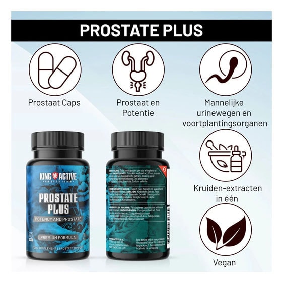 Heb je prostaatproblemen en wil je dar iets aan doen met behulp van een natuurlijk voedingssupplement? Probeer dan King Active Prostate Plus. Lees voordat je start met het gebruik van de capsules altijd de bijsluiter. Ervaar je bijwerkingen? Stop dan het gebruik en raadpleeg indien nodig de huisarts.